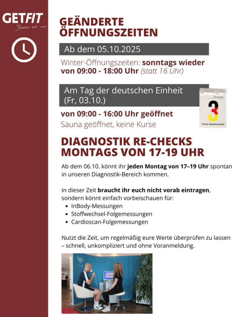 Geänderte Öffnungszeiten & Diagnostik Re-Checks